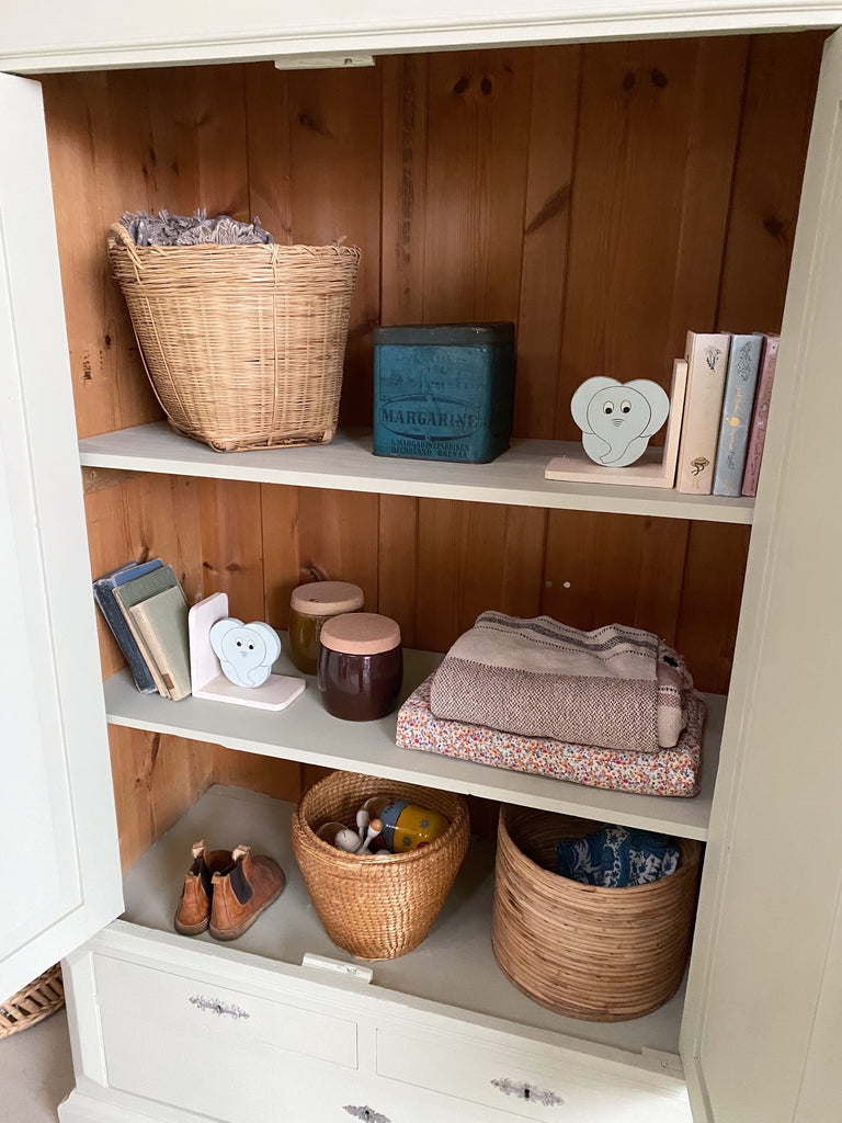 Karlekammerskabet er i rigtig god vintagestand, solidt og sundt i træet. Det er istandsat overalt således at det er fuldt ud funktionelt, kun med minimal overfladisk udseendsmæssig patina.