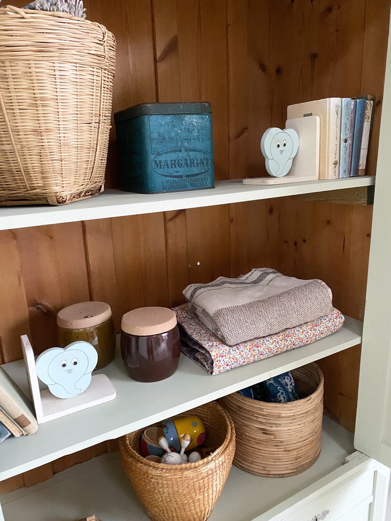 Skabet er også nymalet indeni i samme farve på hylder, låger samt i skuffer.